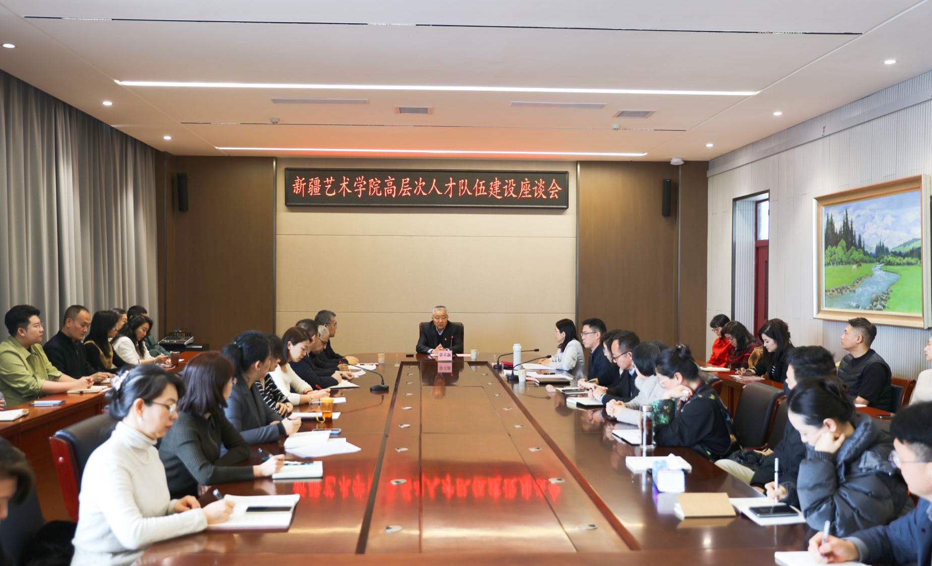 章立新书记对入选的高层次人才表示祝贺,他在讲话中说,近年来学校党委牢牢抓住高水平师资队伍这一关键,推进高层次人才培育工程建设,不断夯实内涵建设高质量发展人才基础,取得了显著成效。同时,他对学校高层次人才队伍建设工作提出了五点要求:一要坚持为党育人、为国育才,以铸牢中华民族共同体意识为主线,落实立德树人根本任务。二要紧紧围绕国家和区域发展需要,增强服务经济社会发展、服务文化润疆的能力和水平。重点聚焦区域经济发展需求,积极探索实践成果推动新质生产力发展的有效机制,创作更多服务国家、服务人民的文艺精品。三要主动适应高质量发展和科技变革新形势,加快推进教育教学改革,努力培养高素质创新型文艺人才。积极转变教育理念,持续推进人才培养方案、教学方法等方面的改革,构建高素质创新型人才培养体系。四要锤炼良好师德师风,做德艺双馨的好老师。五要强化领军人才、拔尖人才、青年英才“三支人才队伍”建设,做到能进能出、动态管理,深入落实学校《高层次人才培育工程实施办法》,切实保障人才培育工程的严肃性和有效性。